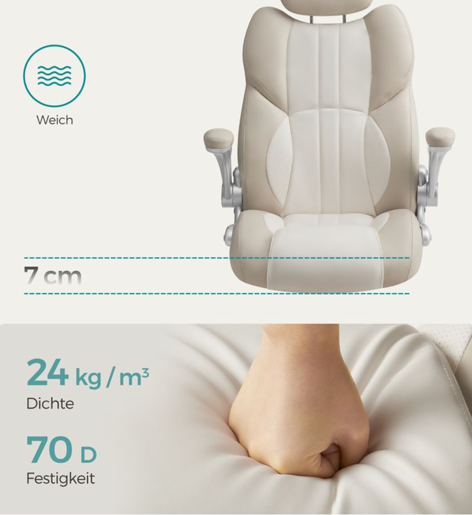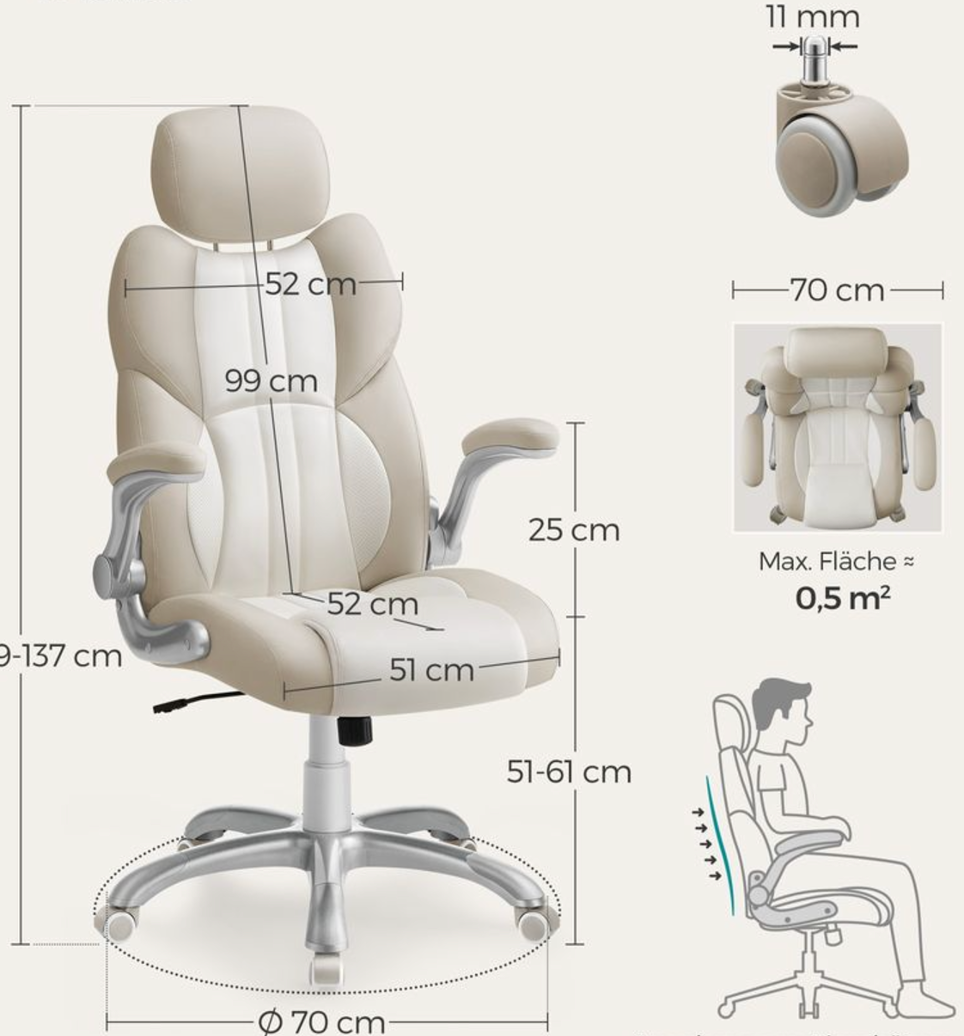 Som en bonus kan nakkestøtten justeres i 3 positioner, ligesom i et bilsæde. Fremragende kvalitet: Denne drejestol er udstyret med støjsvage nylonhjul. Den stjerneformede nylonbase er stabil.