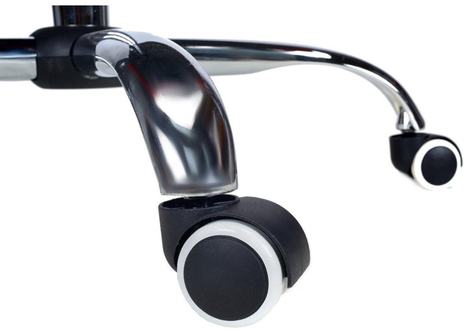 Endvidere højdejusterbar, kan drejes 360 grader og har en vippelås, så du altid forbliver i lodret position. Det specialdesignede ryglæn giver behagelig støtte til rygsøjlens lænd. Den forkromede 5-punkts base med et dobbelt hjul på hvert ben sikrer maksimal balance og stivhed.