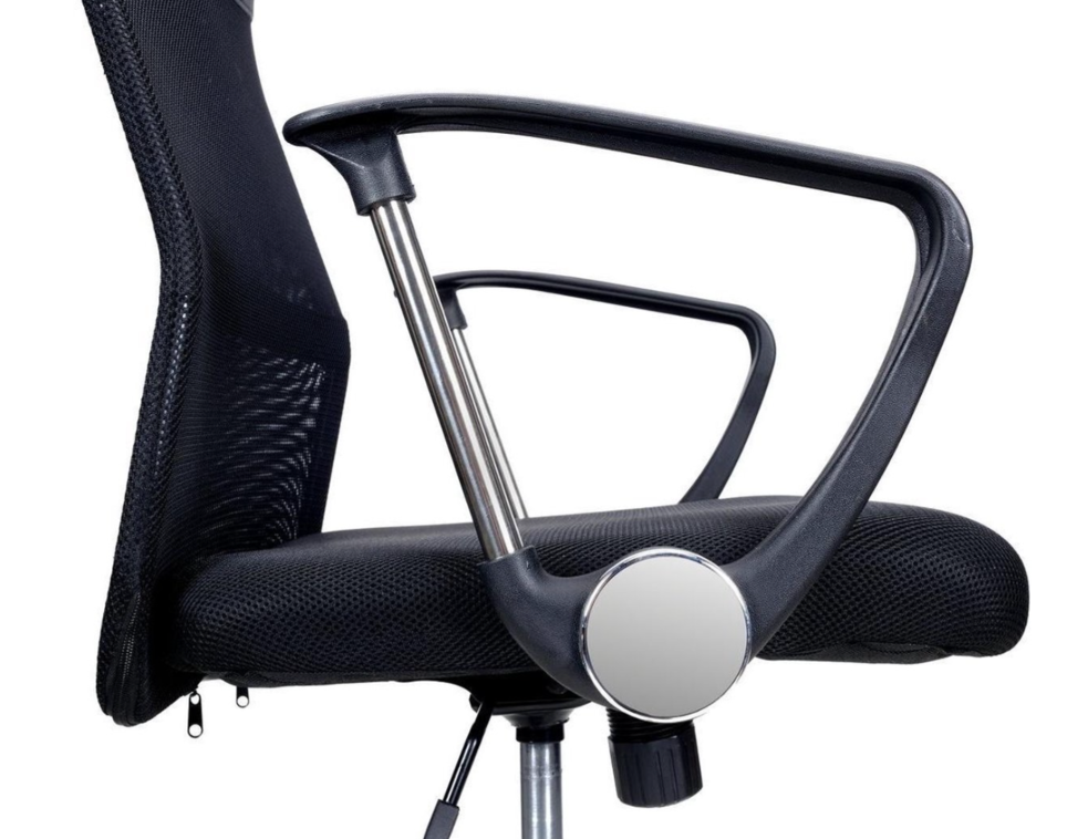 Kontorstol sort med justerbar højde og hjul. Med denne moderne kontorstol kommer du til at sidde som en konge. Stolen har et stilfuldt design og en ergonomisk form. Du kan bruge denne kontorstol i arbejdsværelset eller på arbejdspladsen. Kontorstolen er udstyret med komfortable armlæn og et blødt sæde. Stolen er betrukket med sort stof. Ryglænet er lavet af ventileret stof. Ikke flere klistrede rygge på varme sommerdage på kontoret.