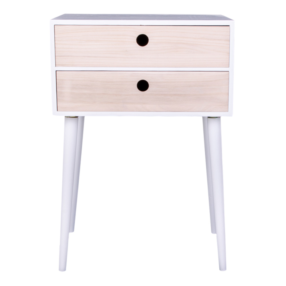 Sengebord i hvid med 2 naturtrรฆs skuffer