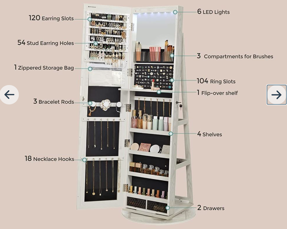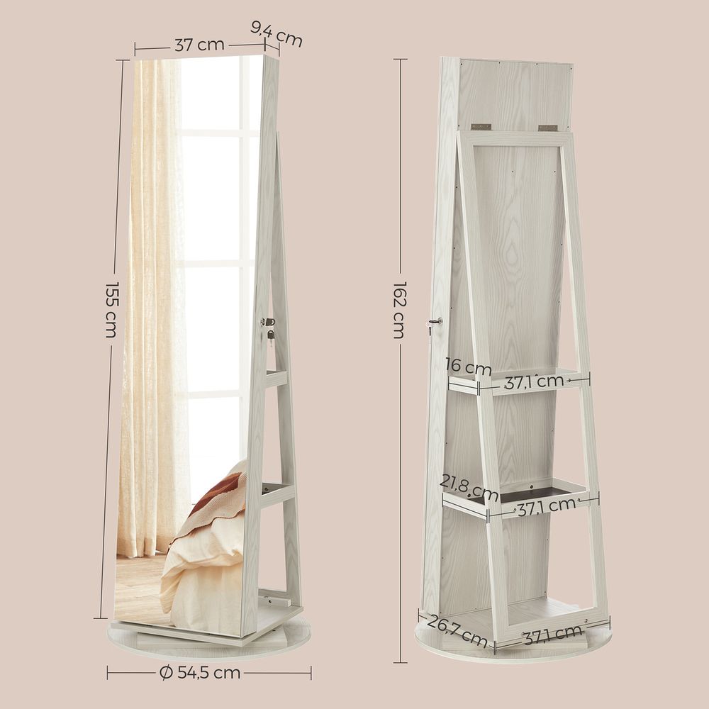 - Størrelse på smykkeskabet: 37 x 9,4 x 155 cm (L x B x H)